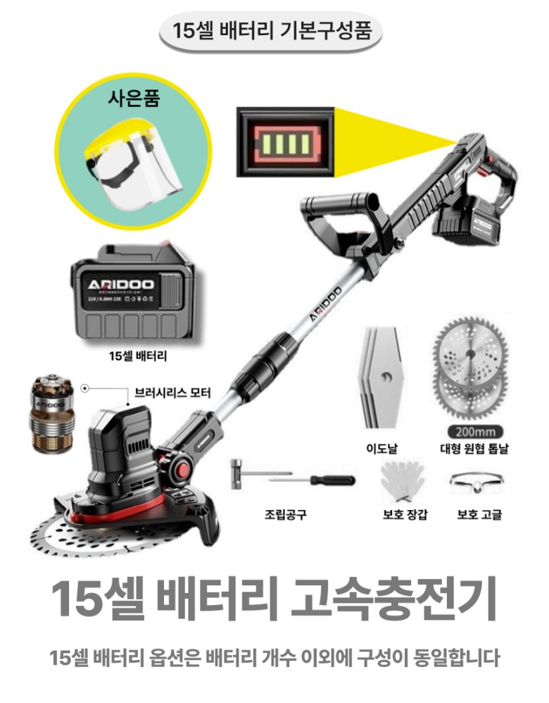 독일기술 초강력 충전 잔디 예초기 경량 제초기 잔디깍기 : 정가네잡화점