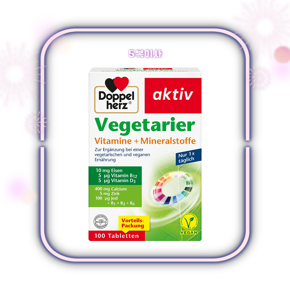 - Doppelherz 채식 비타민 + 미네랄은 채식주의자와 비건 식단의 요구에 최적으로 맞춰져 있습니다.