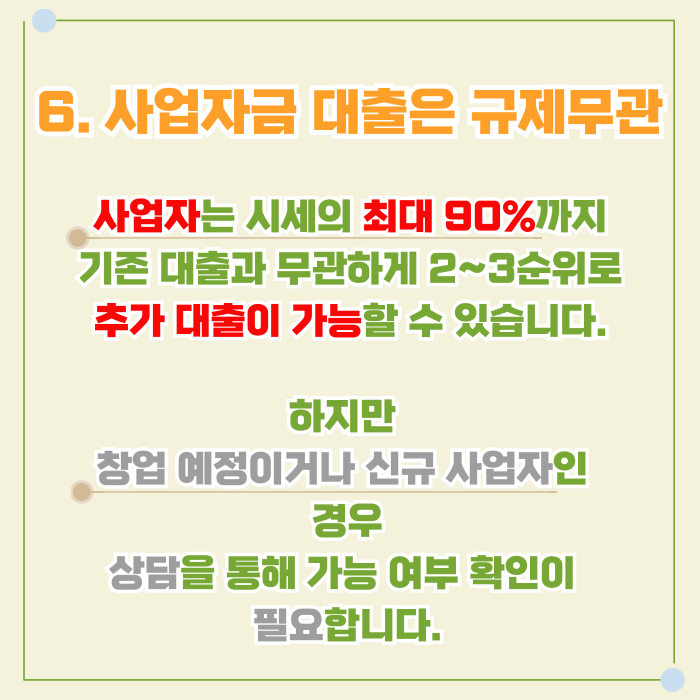 기존 담보 금융이 존재하더라도 담보 가치와 채무 비율이 일정 기준을 충족하는 경우 추가 자금 이용 가능성이 검토될 수 있다.
